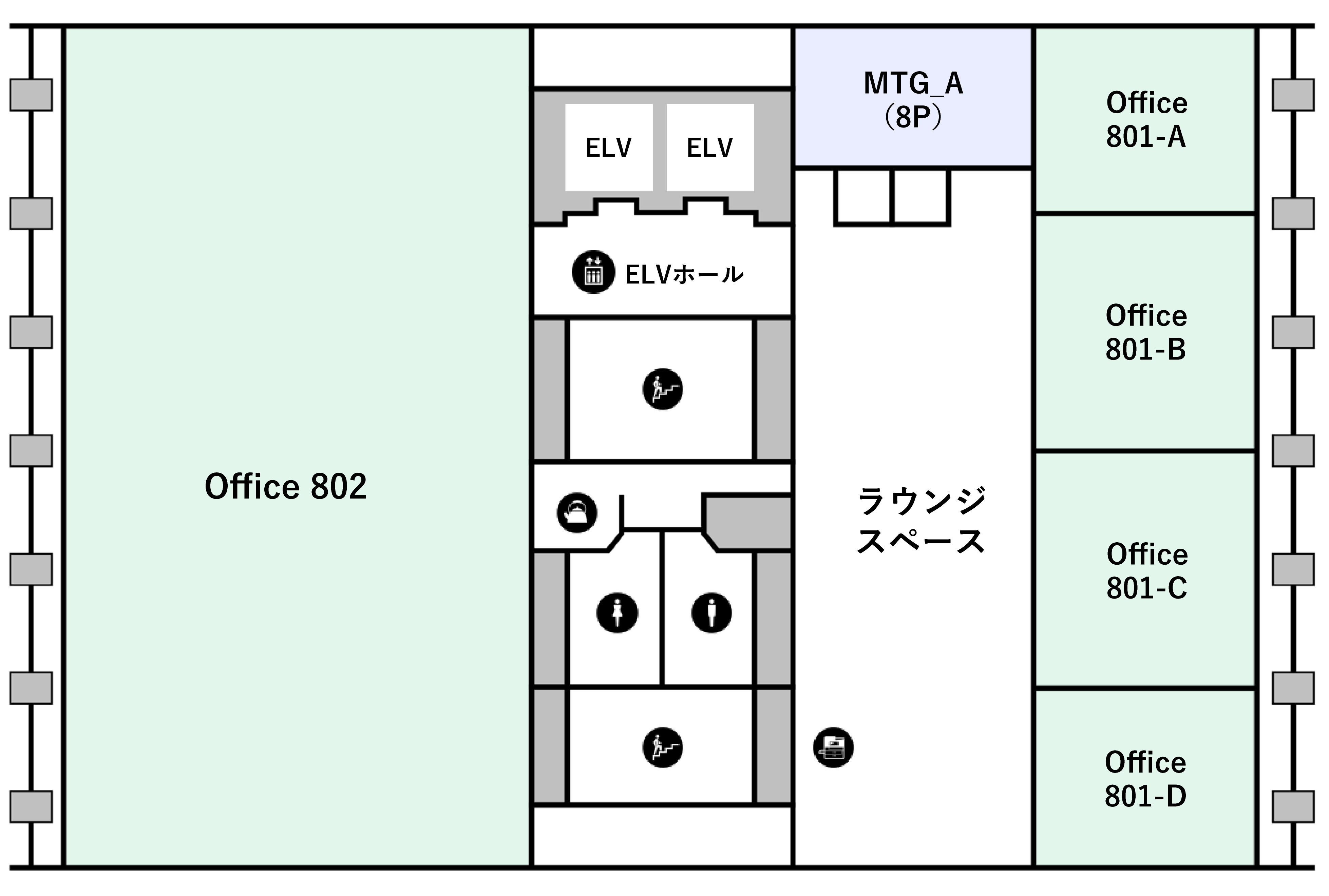 | Leasable offices | 1F(1 room), 2F(5 rooms), 7F(2 rooms), 8F(5 rooms), 9F(1 room) |
